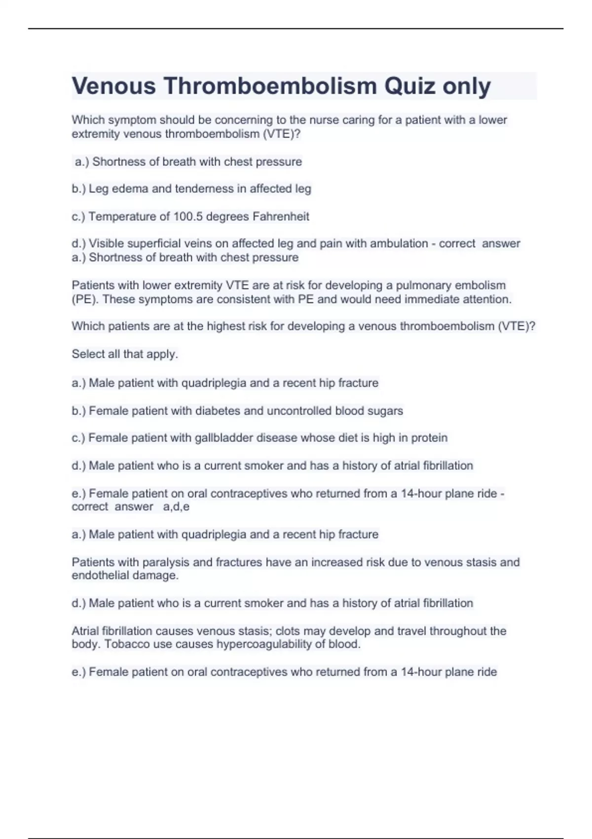 venous thromboembolism quiz only 2023