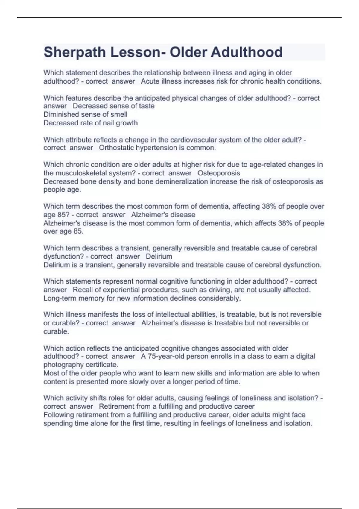 Sherpath Lesson questions and answers verified 2023