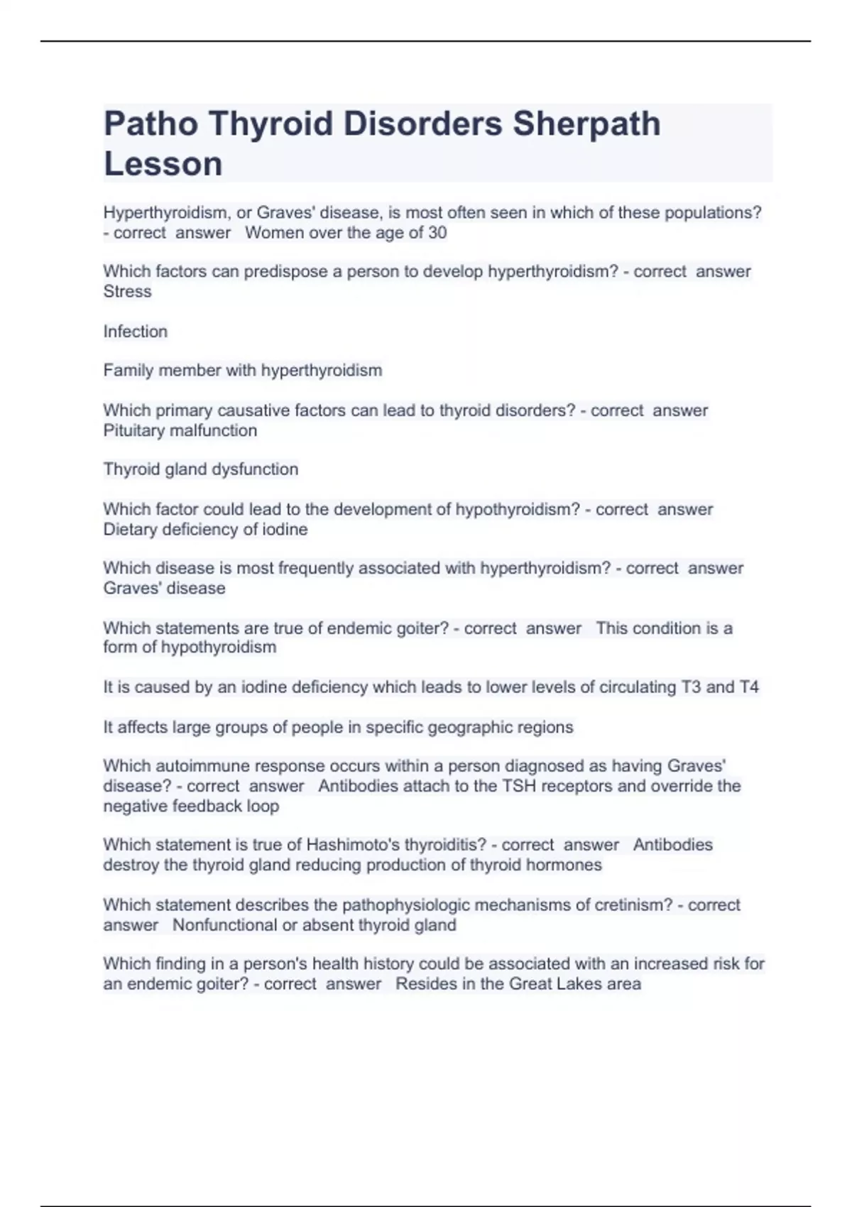 Patho Thyroid Disorders Sherpath Lesson questions and answers already passed 2023