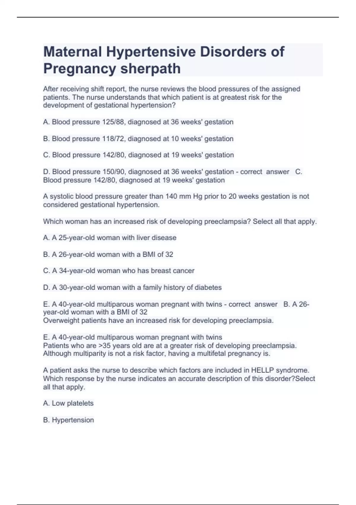 Maternal Hypertensive Disorders of Pregnancy sherpath questions with copleted solutions 2023