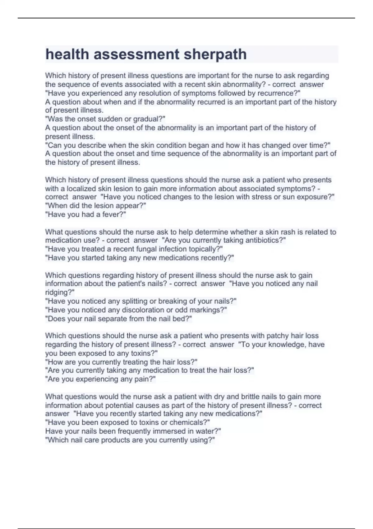 health assessment sherpath questions and answers verified 2023