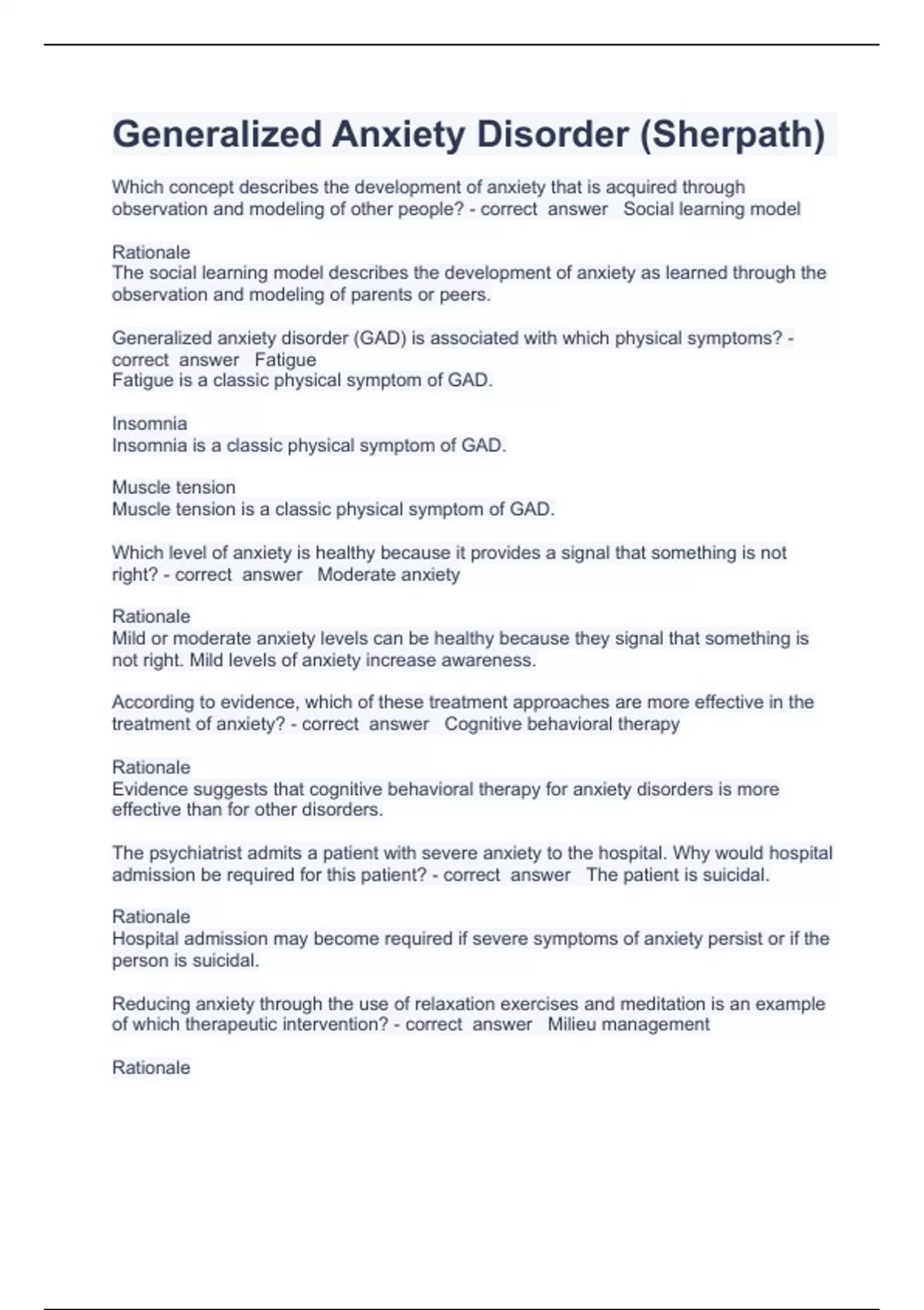 Generalized Anxiety Disorder a questions and answers well elaborated 2023