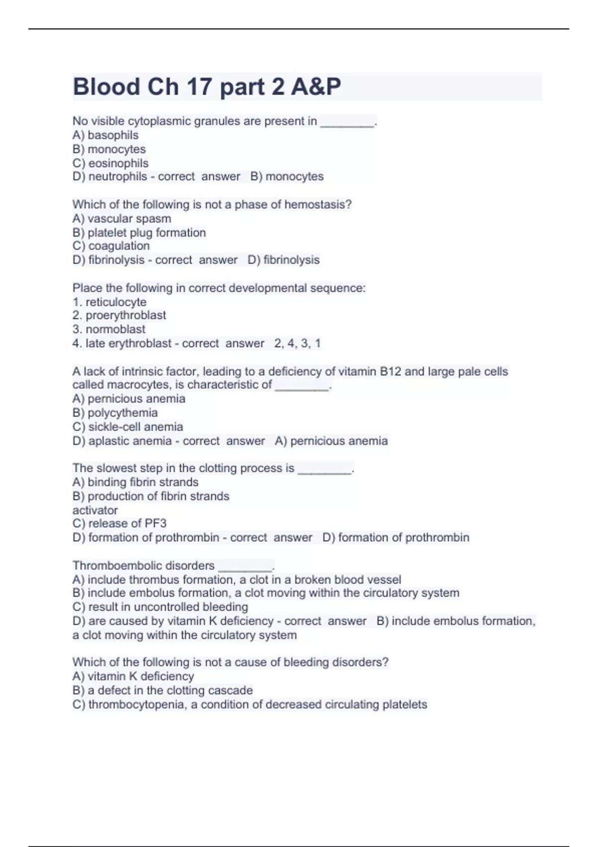 Blood Ch 17 part 2 A questions and answers already passed 2023