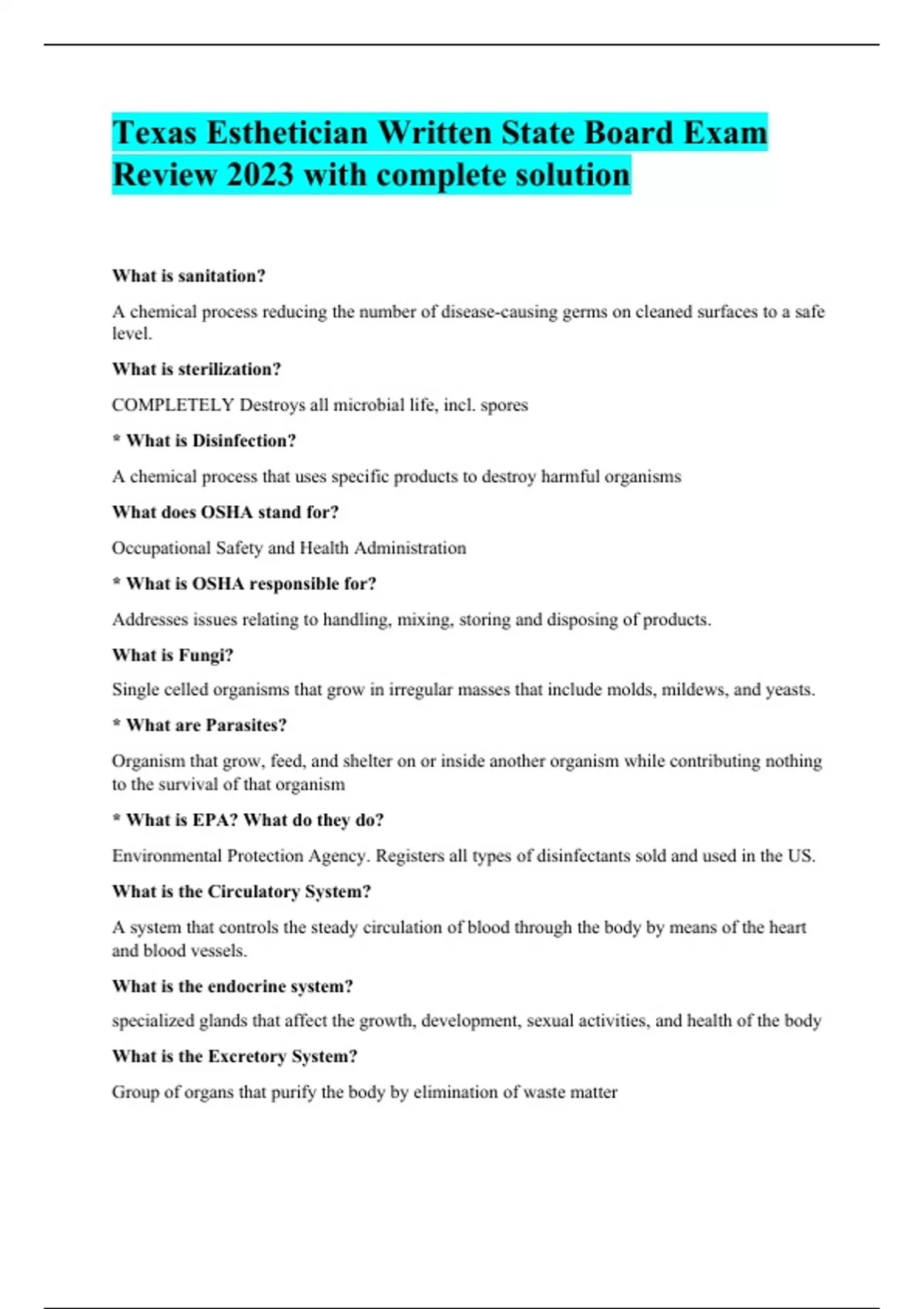 Texas Esthetician Written State Board Exam Review 2023 with complete solution