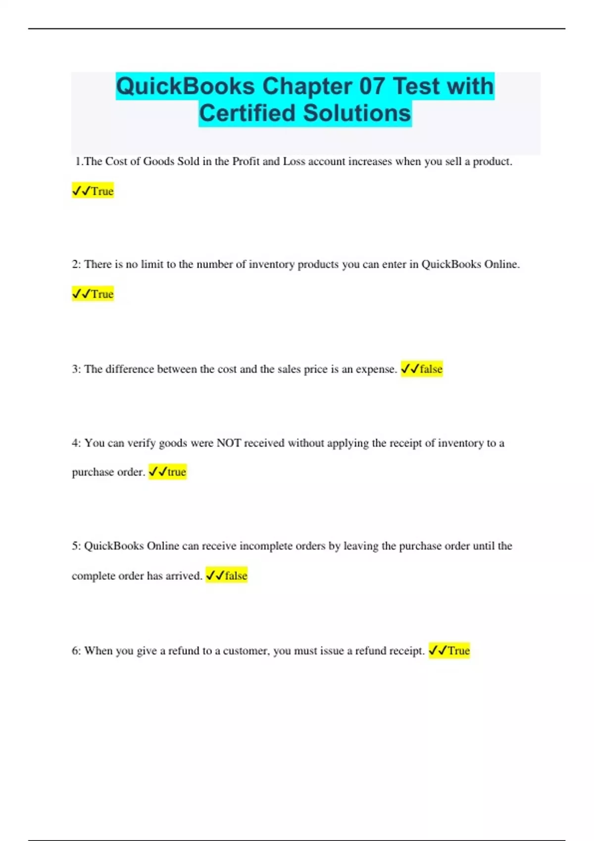 1.The Cost of Goods Sold in the Profit and Loss account increases when you sell a product. True 2: There is no limit to the number of inventory products you can enter in QuickBooks Online. True 3: The difference between the cost and the sales price is an expense. false