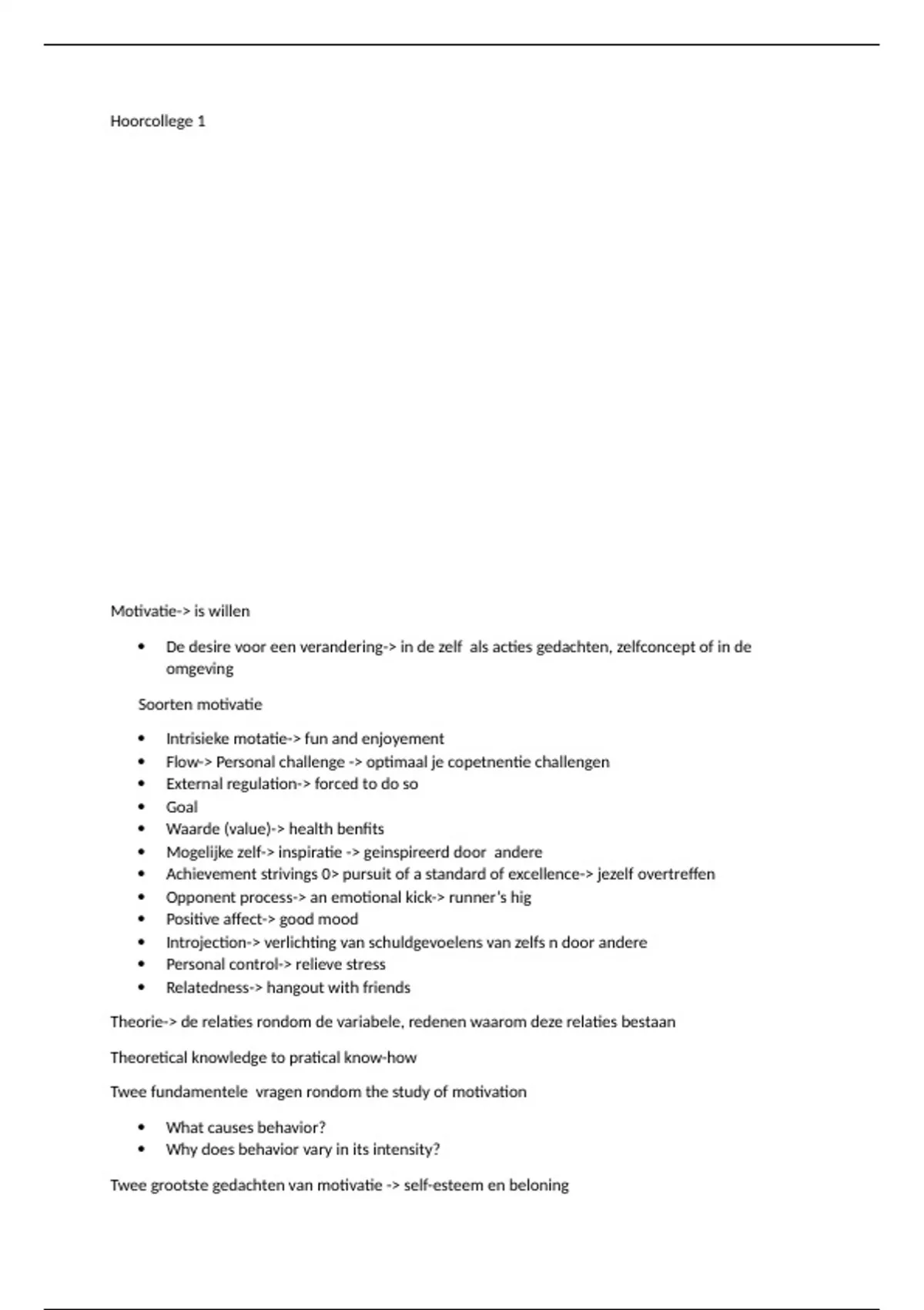 Samenvatting van motivatie en de zelfsturende mens van zowel het boek als hoorcolleges:) Lagere prijs kan als je me een berichtje stuurt dan stuur ik het via met een tikkie:)