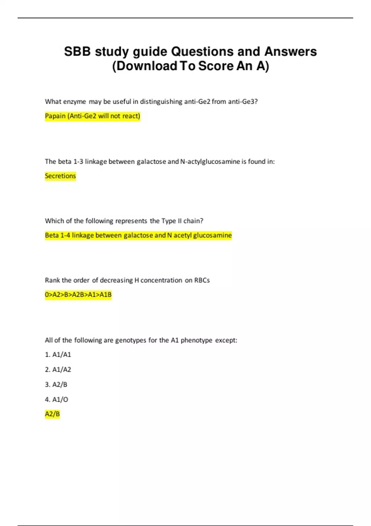 SBB study guide Questions and Answers (Download To Score An A)