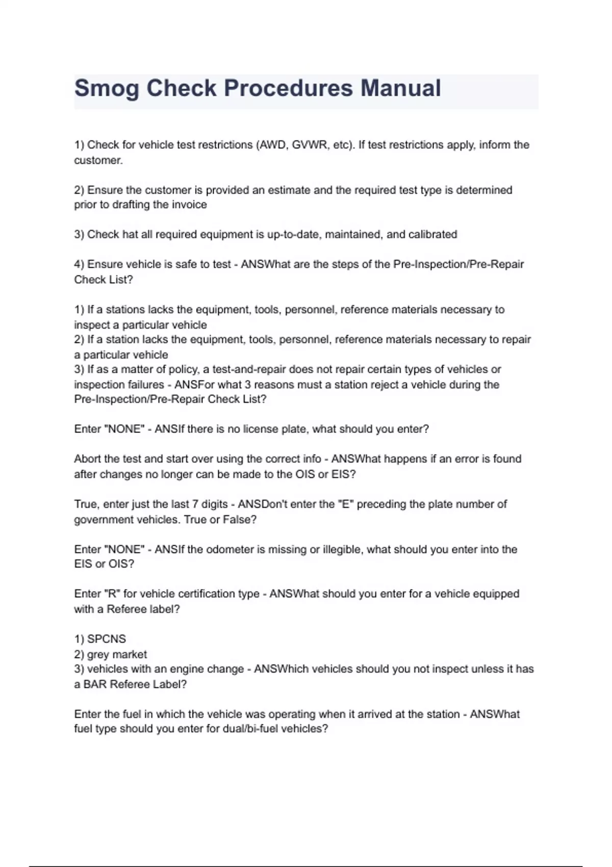 Smog Check Procedures Manual( GRADED A+ 100% VERIFIED)