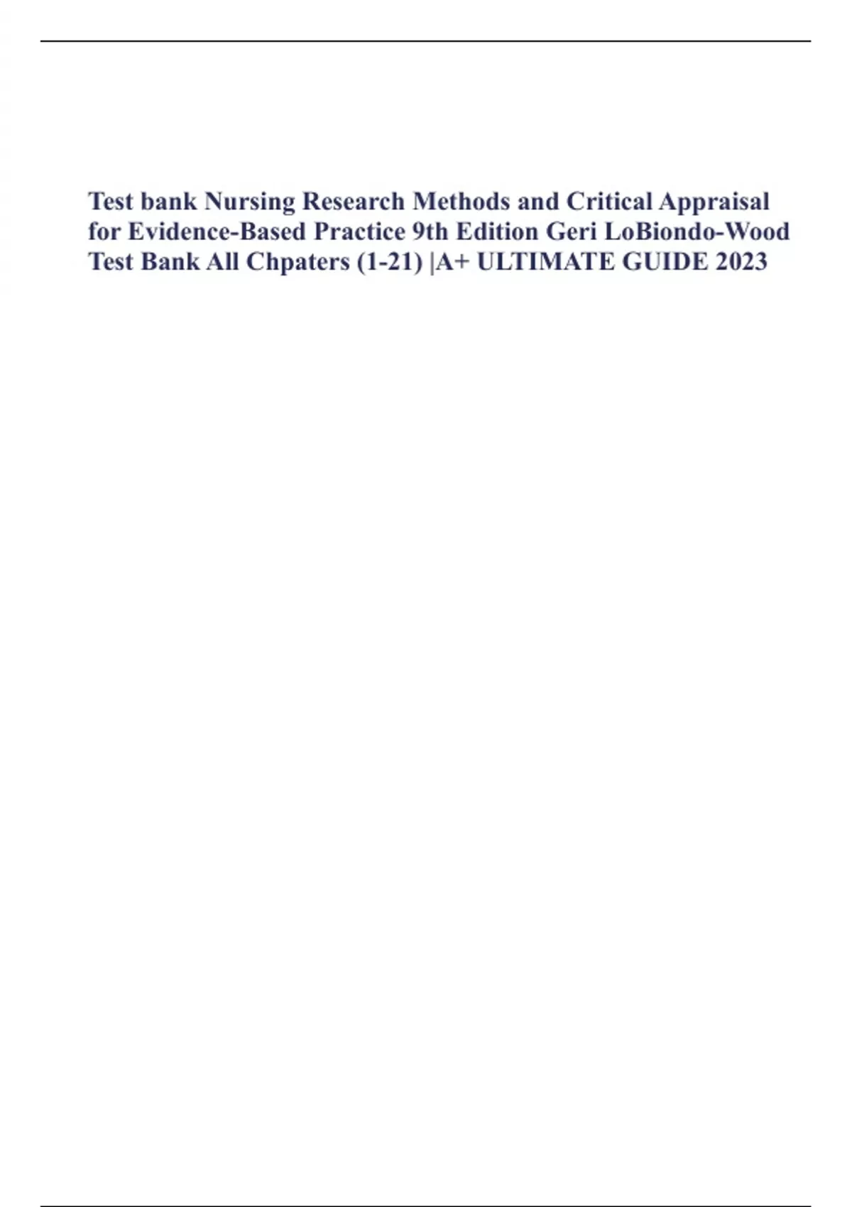 Test bank Nursing Research Methods and Critical Appraisal for Evidence-Based Practice 9th Edition Geri LoBiondo-Wood Test Bank All Chpaters (1-21) |A+ ULTIMATE GUIDE 2023