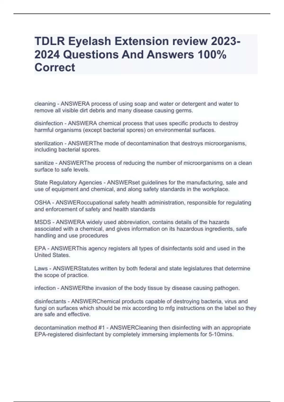 TDLR Eyelash Extension review Questions And Answers 100% Correct