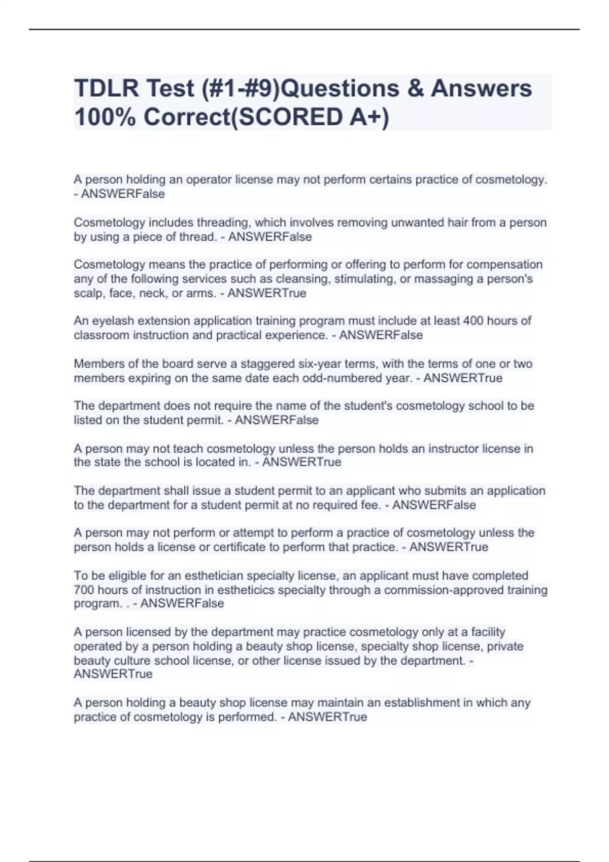 TDLR Test (#1-#9)Questions & Answers 100% Correct(SCORED A+)