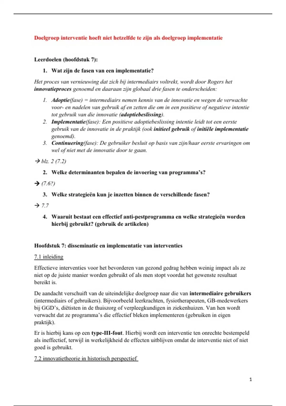 Hoofdstuk 7: disseminatie en implementatie van interventies