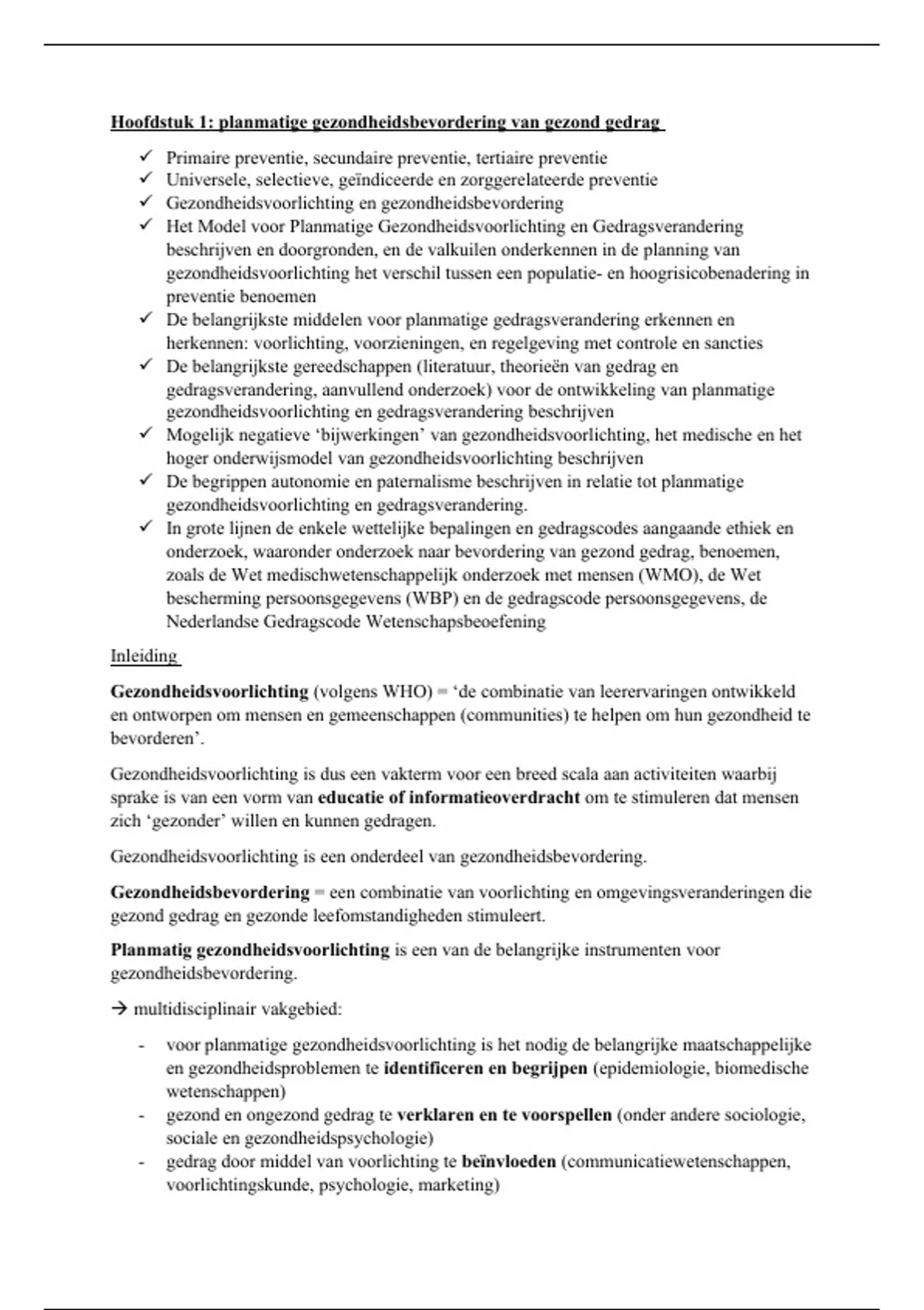 Hoofdstuk 1: planmatige gezondheidsbevordering van gezond gedrag