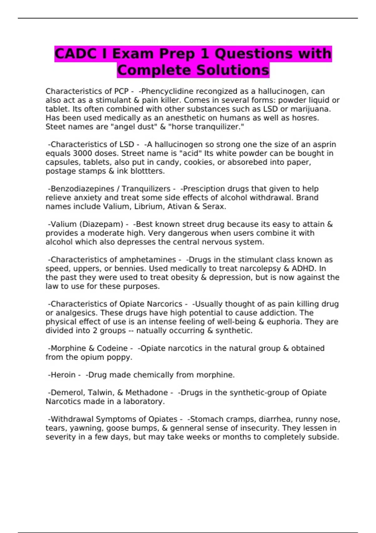 CADC I Exam Prep 1 Questions with Complete Solutions