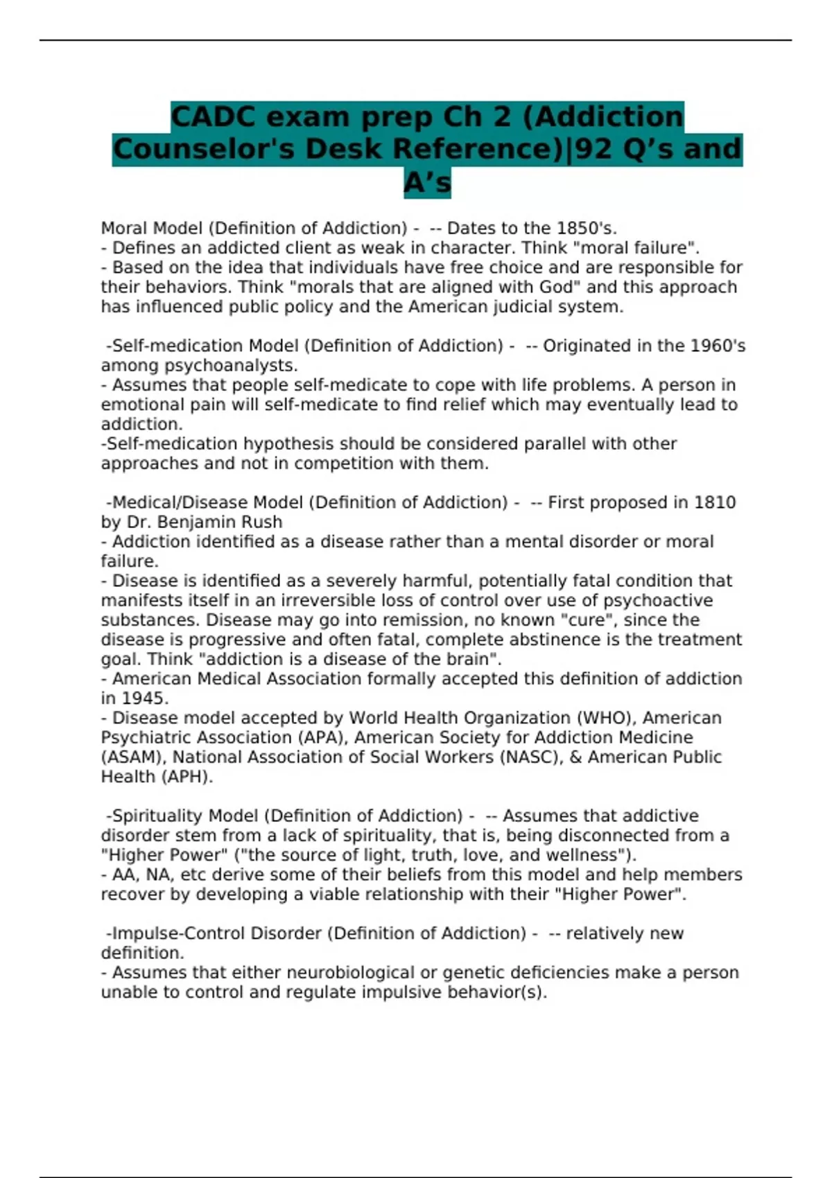 CADC exam prep Ch 2 (Addiction Counselor's Desk Reference)|92 Q’s and A’s