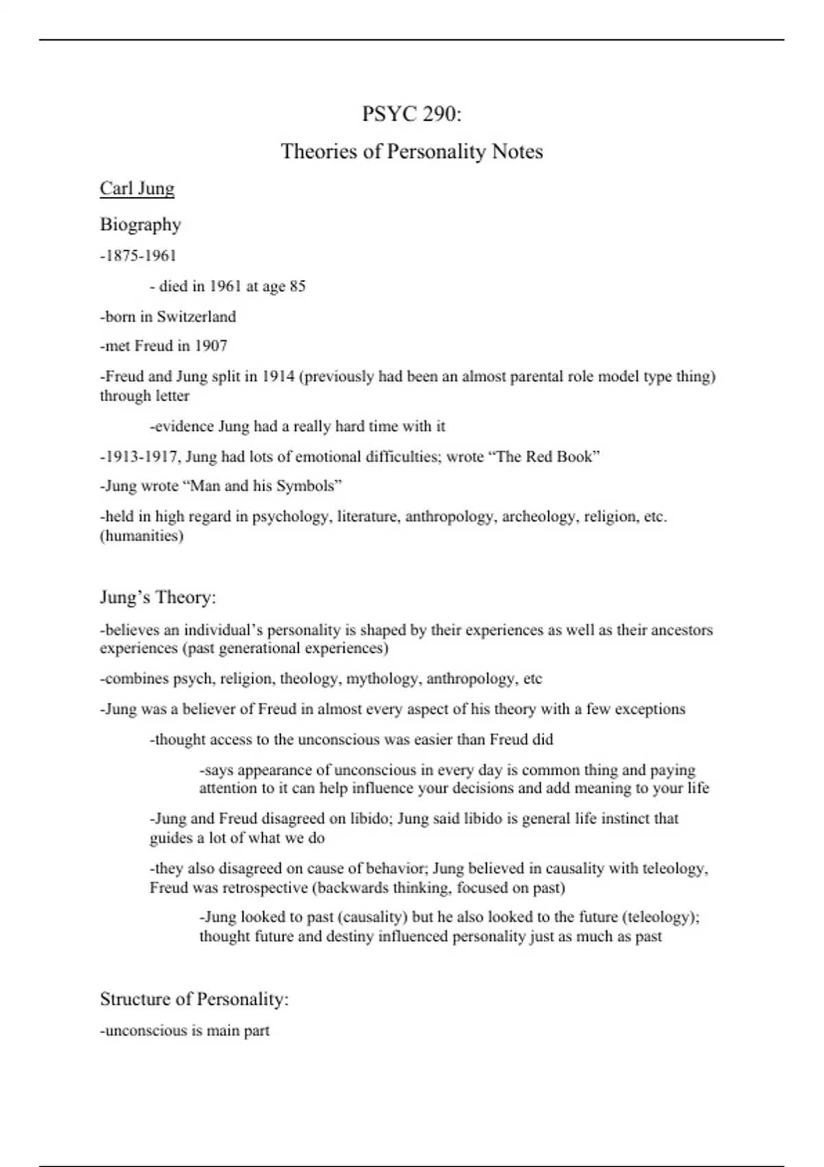 Theories of Personality (PSYC 290) Carl Jung Notes