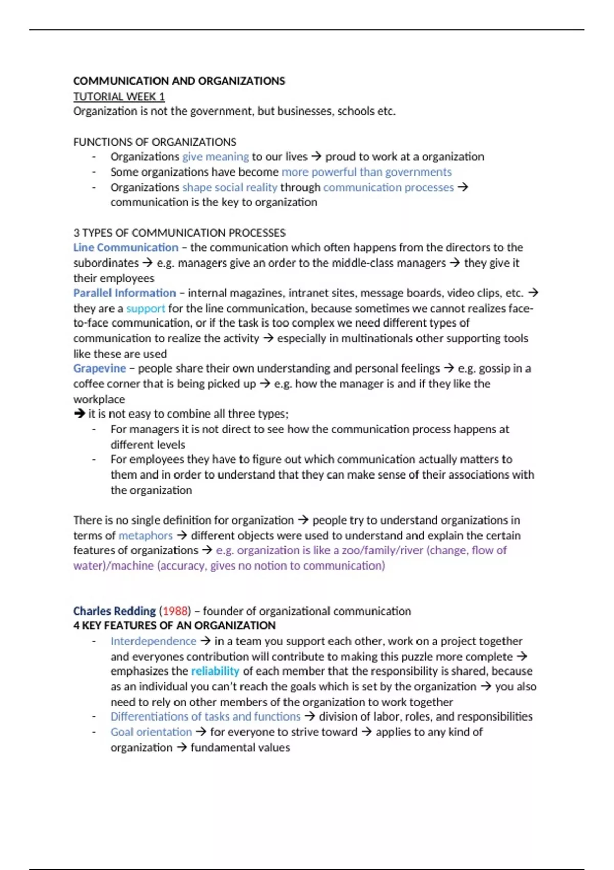 - Organizations shape social reality through communication processes