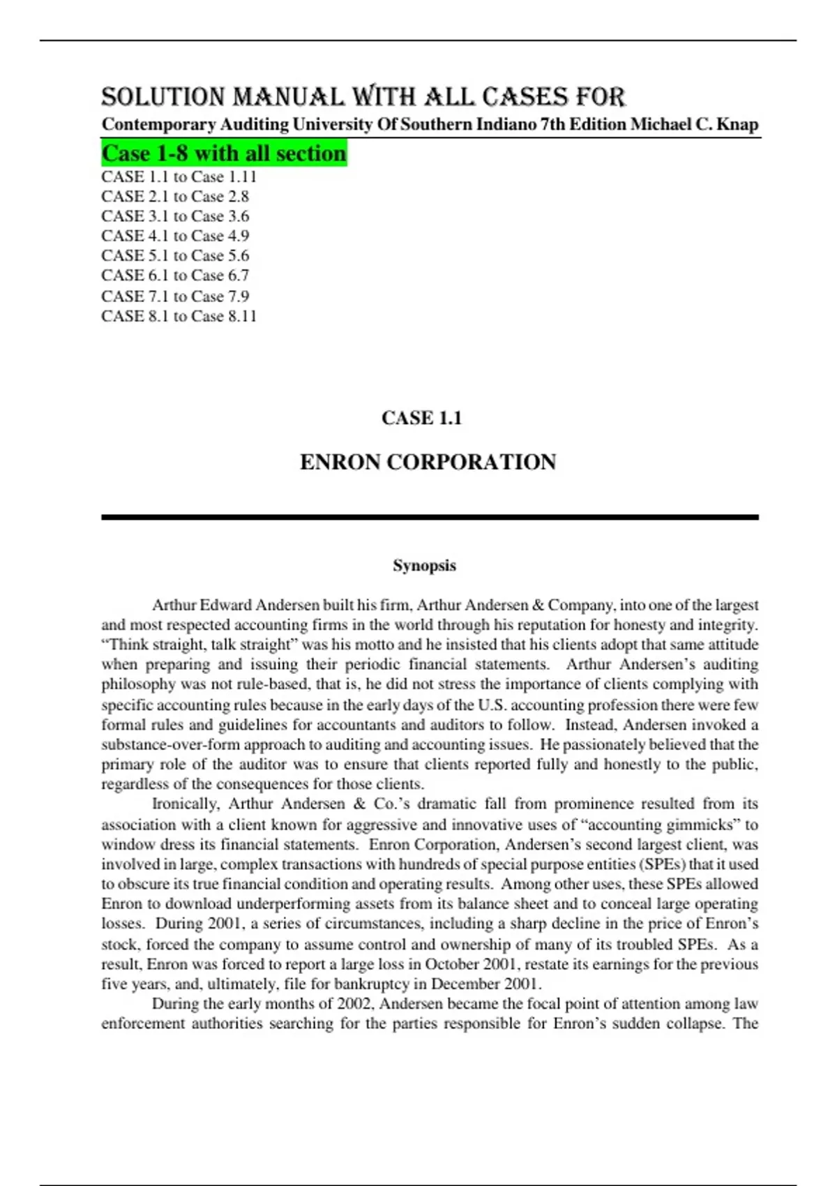 Solution Manuals with All Cases for Contemporary Auditing University Of Southern Indiano 7th Edition Michael C. Knap