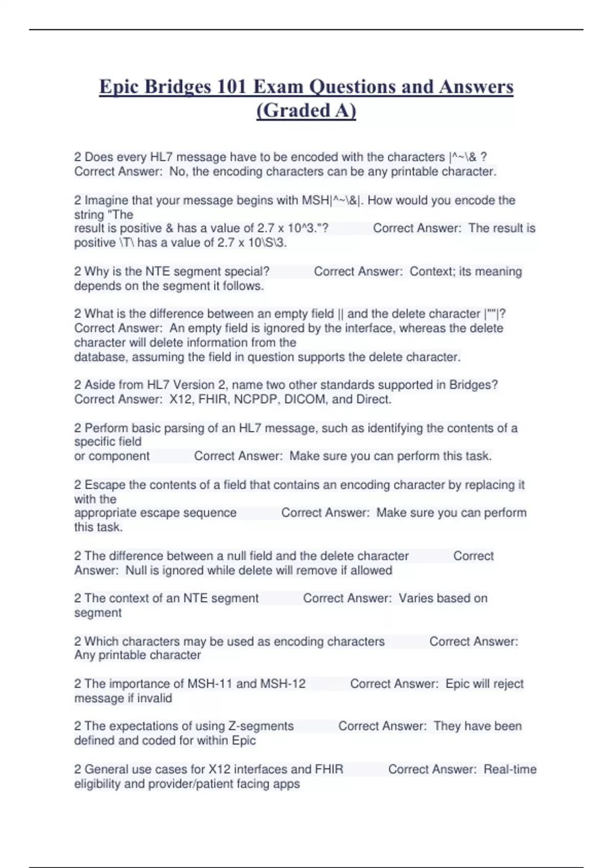 Epic Bridges 101 Exam Questions and Answers (Graded A)