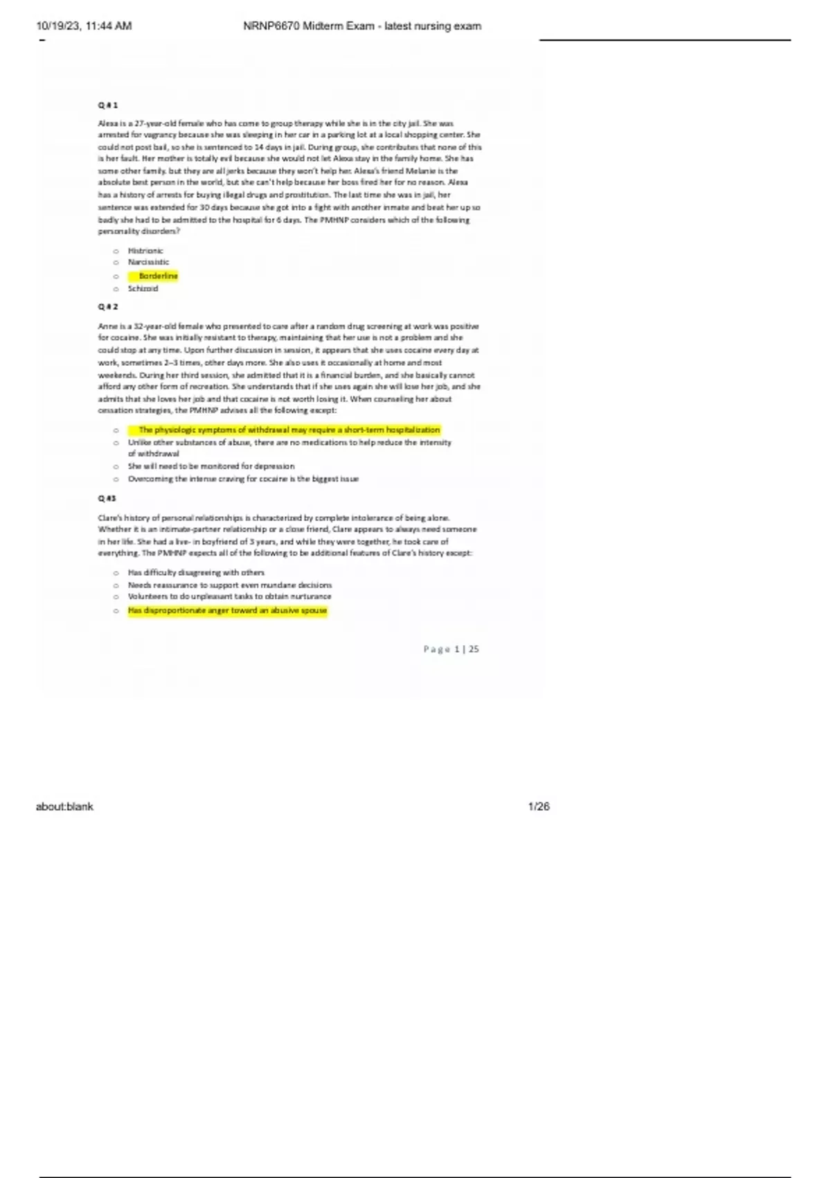 ,10/19/23, 11:44 AM NRNP6670 Midterm Exam - latest nursing exam