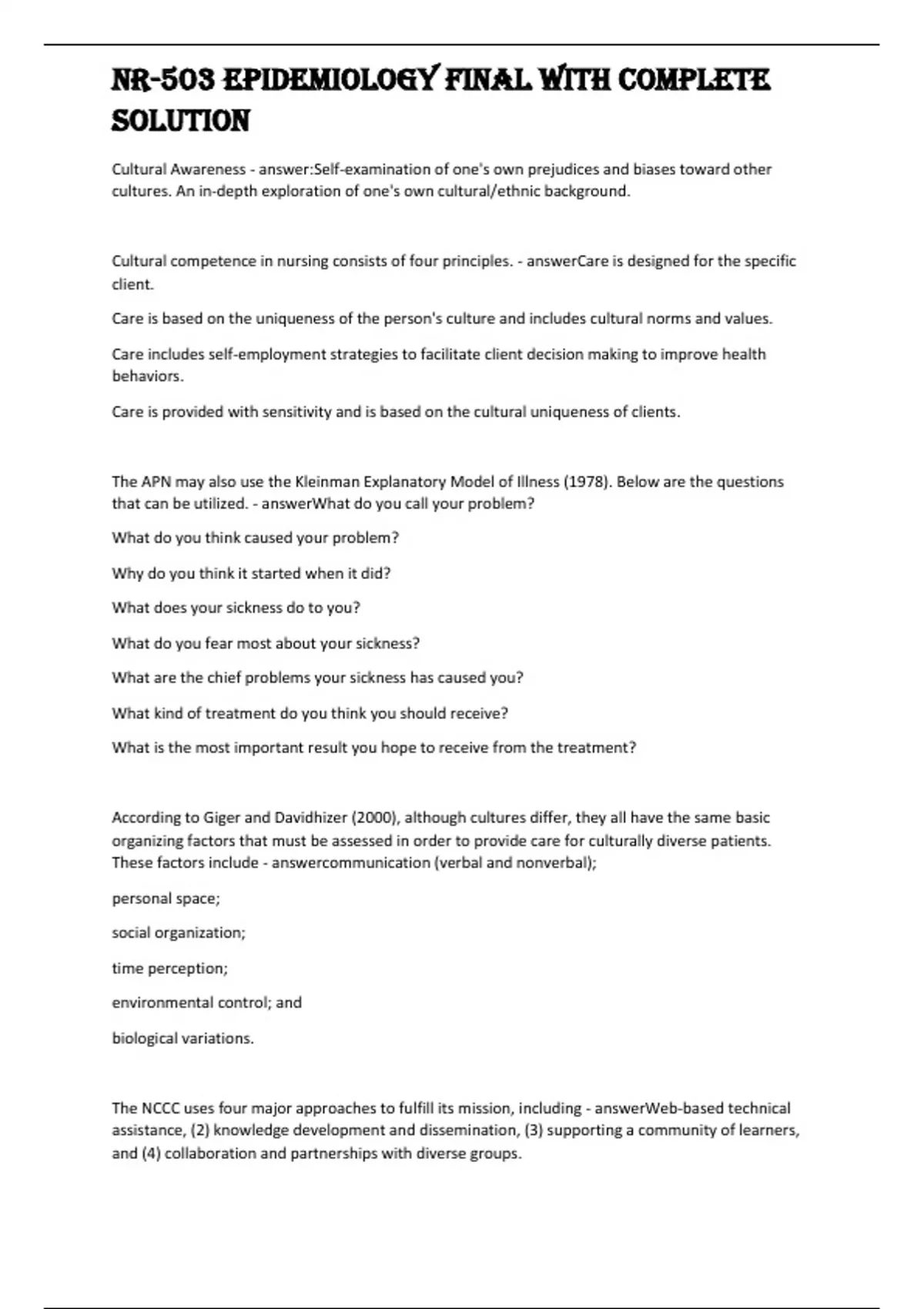 NR 503 EPIDEMIOLOGY With Complete Updated SolutionBUNDLE