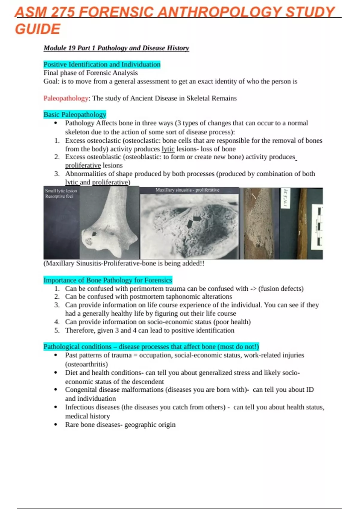 ASM275 / ASM 275 Forensic Anthropology Module 19 Study Guide with complete solution