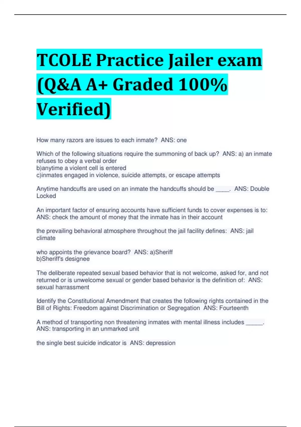 TCOLE Practice Jailer exam (Q&A A+ Graded 100% Verified)