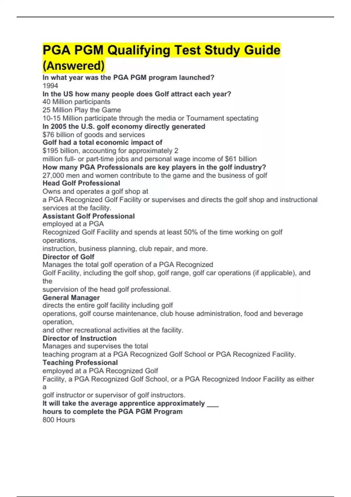 PGA PGM Qualifying Test Study Guide (Answered)