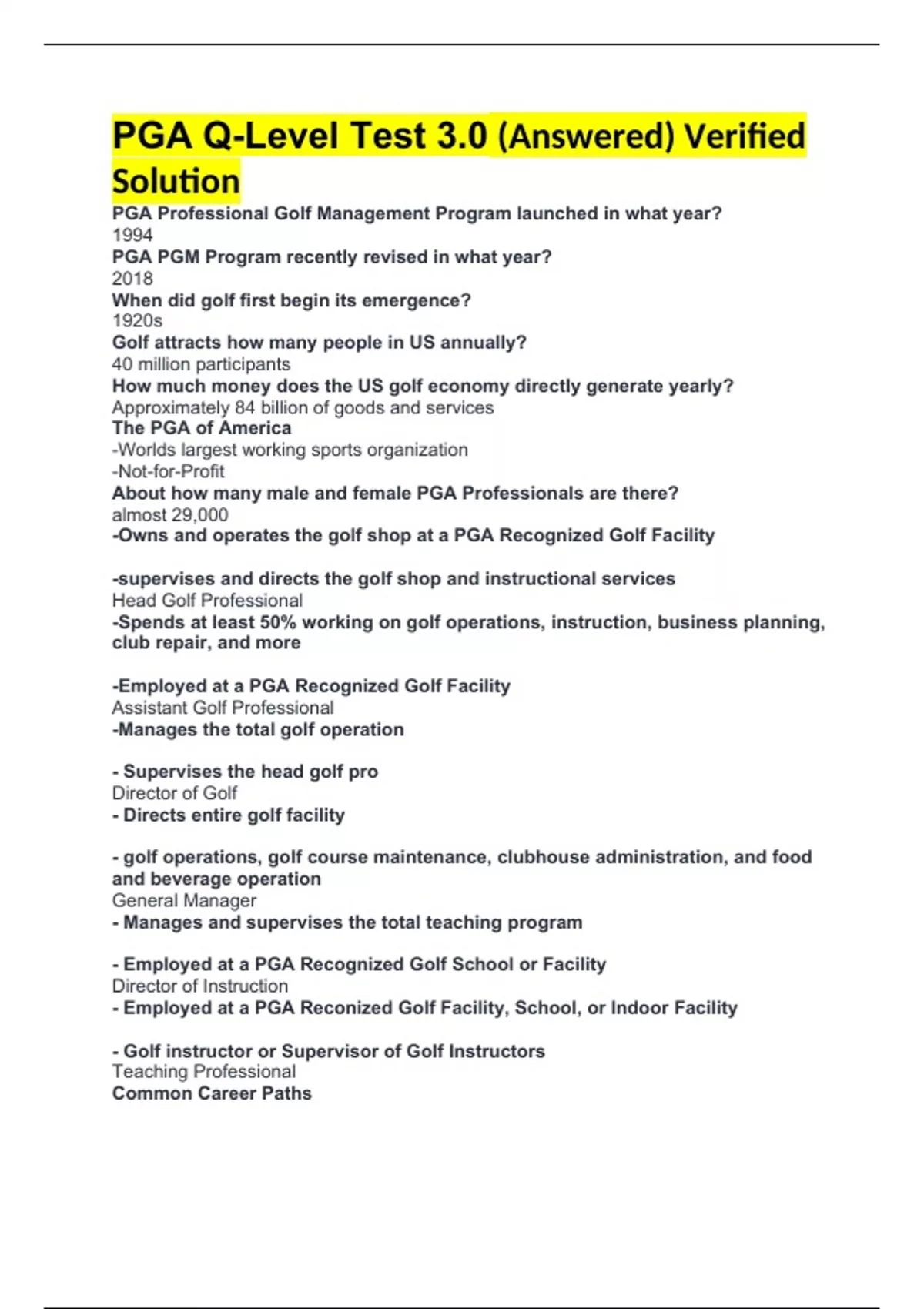 the US golf economy directly generate yearly? Approximately 84 billion of goods and services The PGA of America -Worlds largest working sports organization -Not-for-Profit About how many male and female PGA Professionals are there? almost 29,000 -Owns and operates the golf shop at a PGA Recognized Golf Facility -supervises and directs the golf shop and instructional services Head Golf Professional -Spends at least 50% working on golf operations, instruction, business planning, club repair, and more -Employed at a PGA Recognized Golf Facility Assistant Golf Professional -Manages the total golf oper