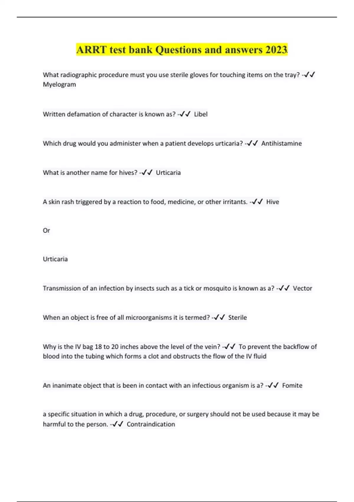 What type of radiographic procedure requires an intrathecal injection? -✔✔ Myelogram