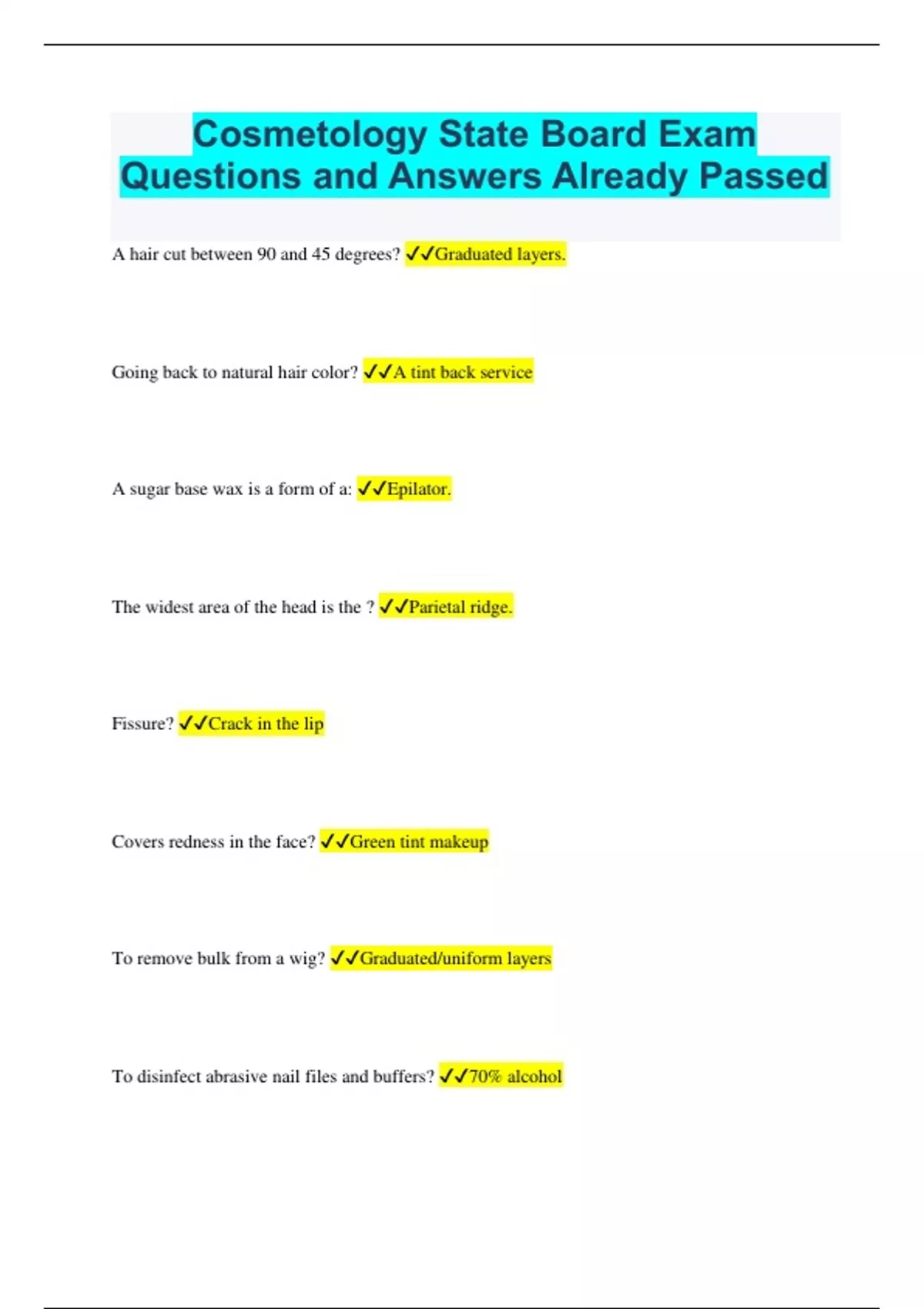 Cosmetology State Board Exam Questions and Answers Already Passed