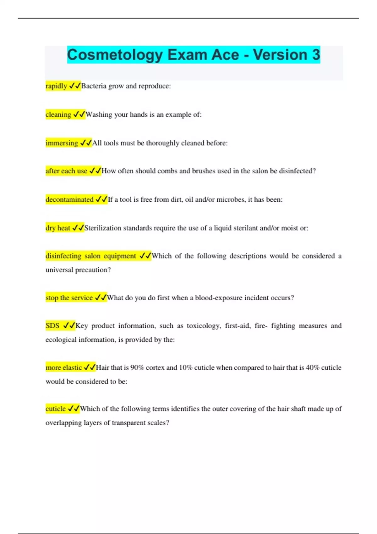Cosmetology Exam Ace Version 3 Questions and Answers with Verified solutions | 2023/2024