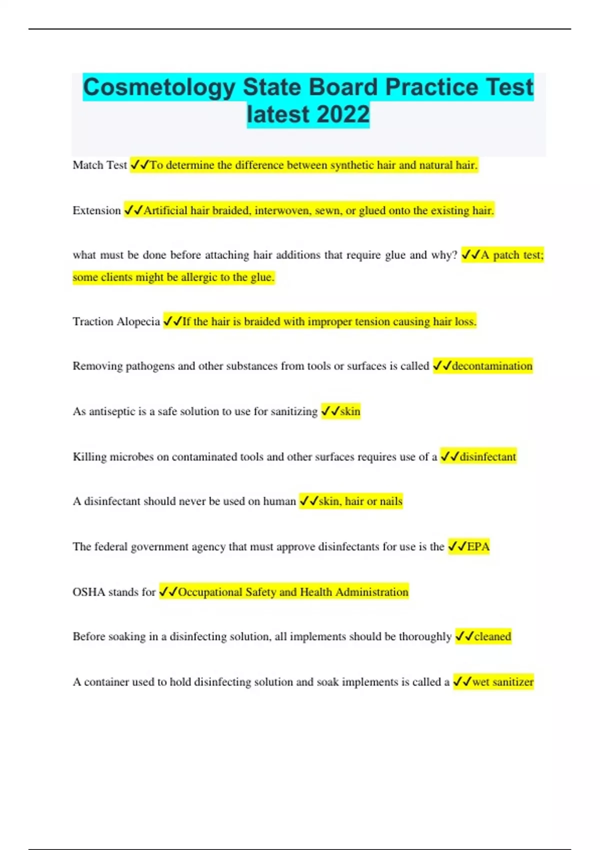 Cosmetology State Board Practice Test latest 2022/2023 | 100% pass