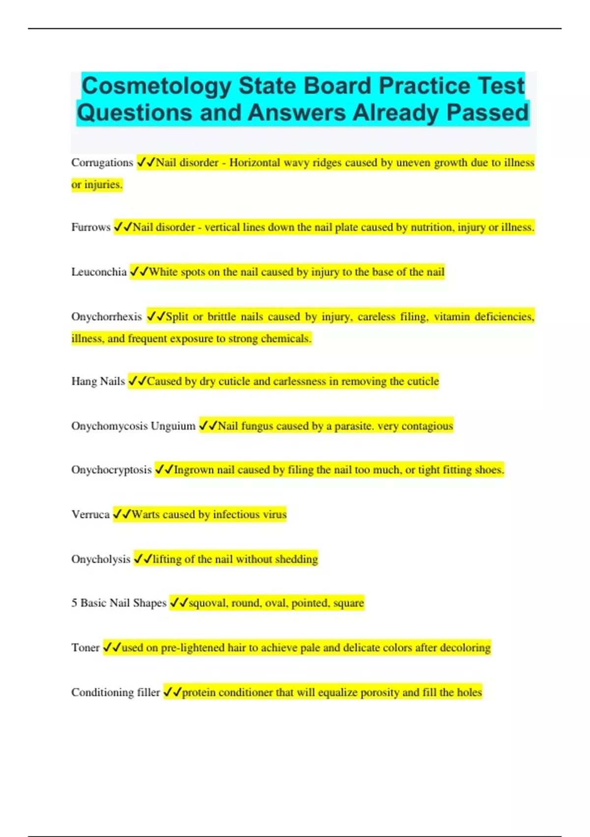 Cosmetology State Board Practice Test Questions and Answers Already Passed