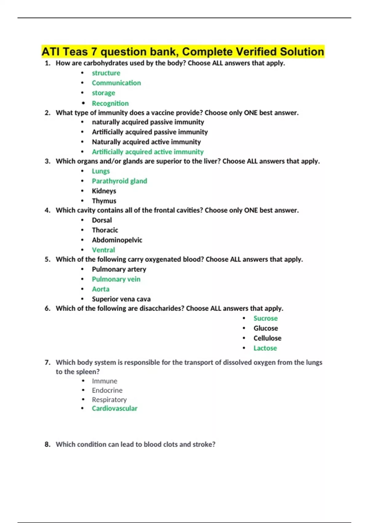 ATI Teas 7 question bank, Complete Verified Solution