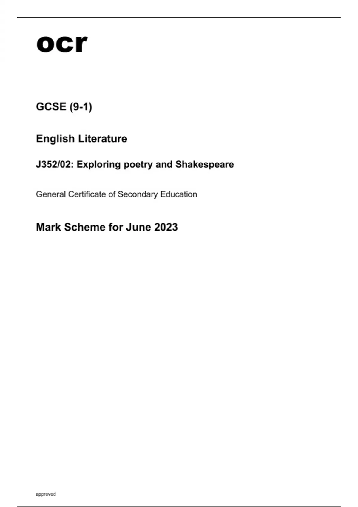 ocr GCSE English Literature J352/02 Mark Scheme June2023.