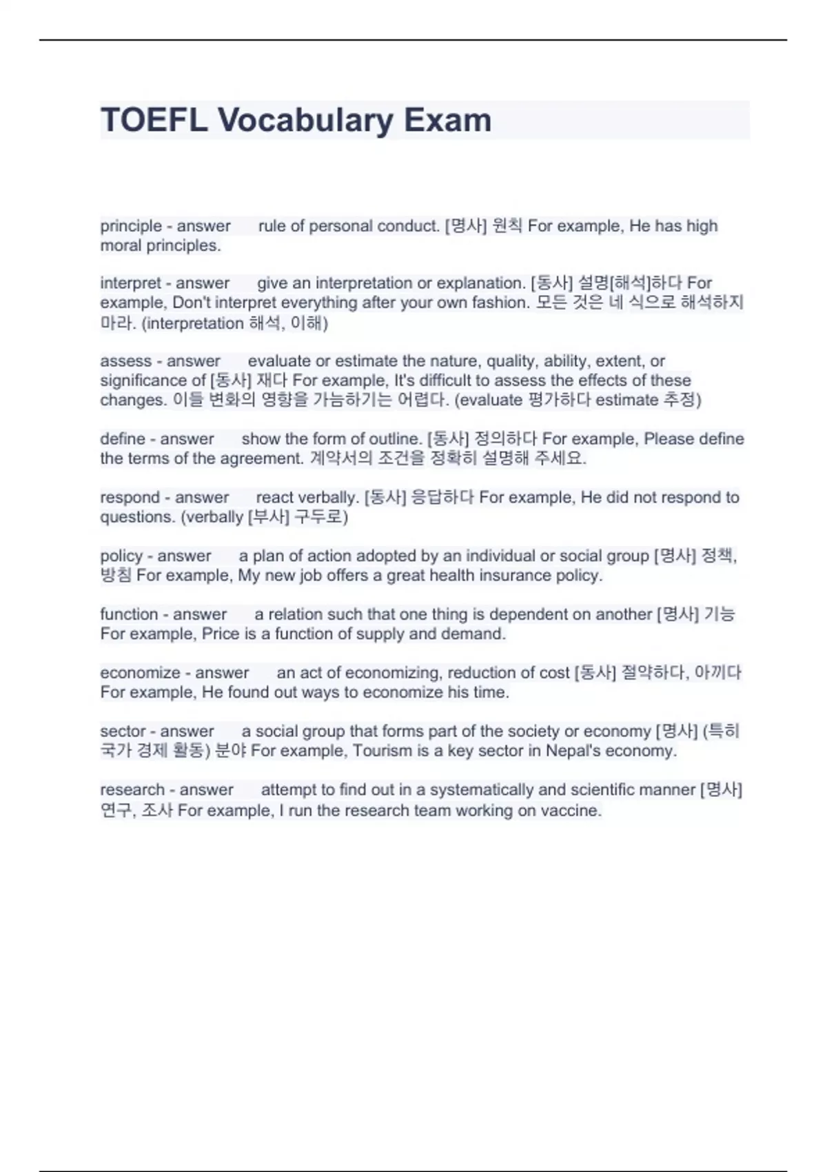 TOEFL Vocabulary Exam Questions with complete Answers 2023