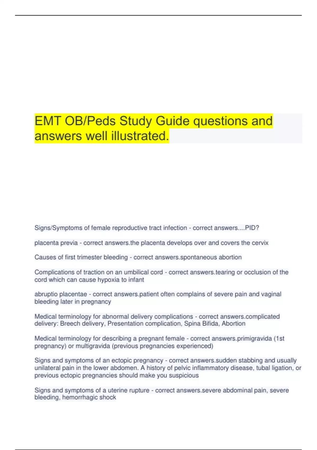 EMT OB/Peds Study Guide questions and answers well illustrated.