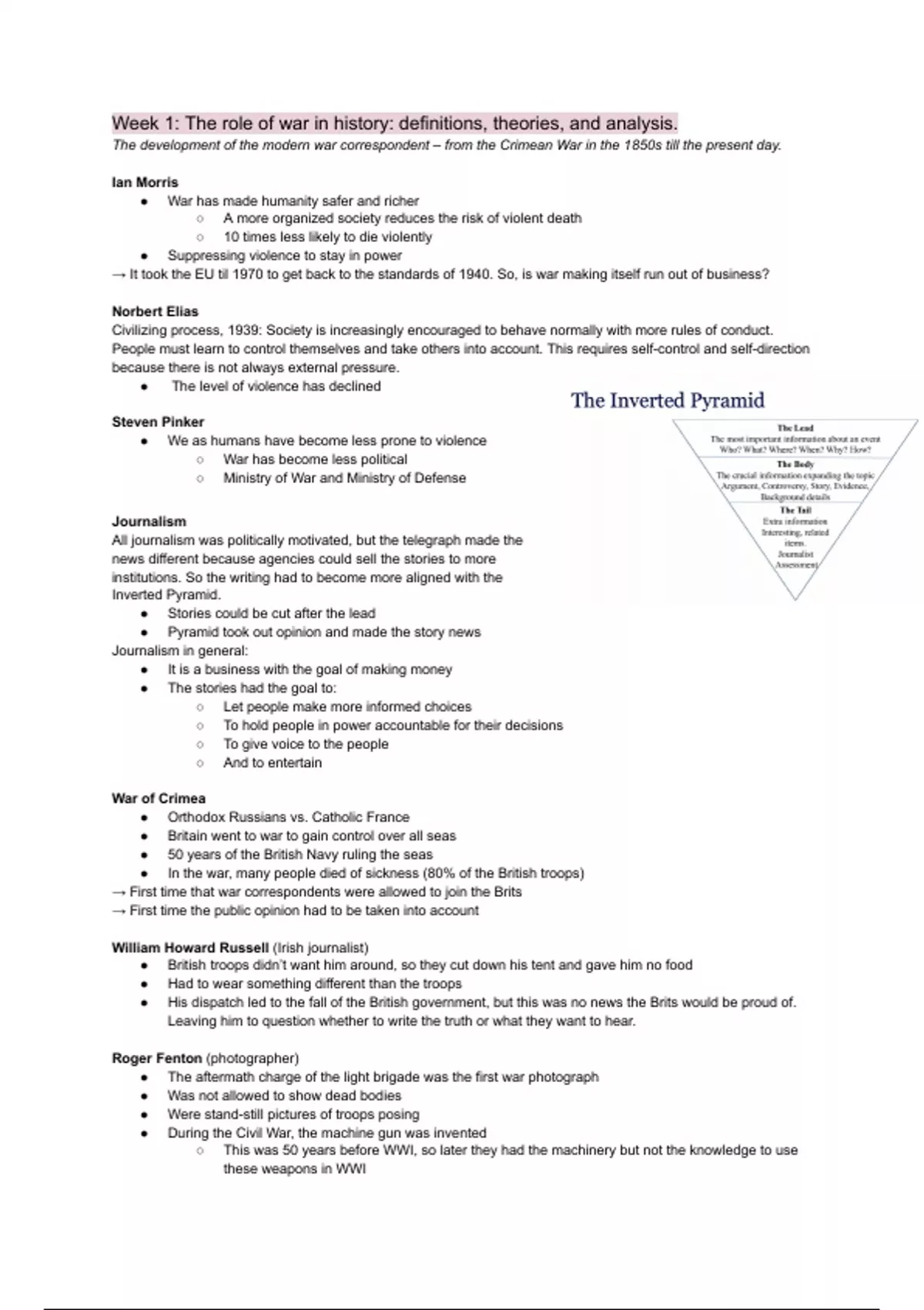 Week 1: The role of war in history: definitions, theories, and analysis.