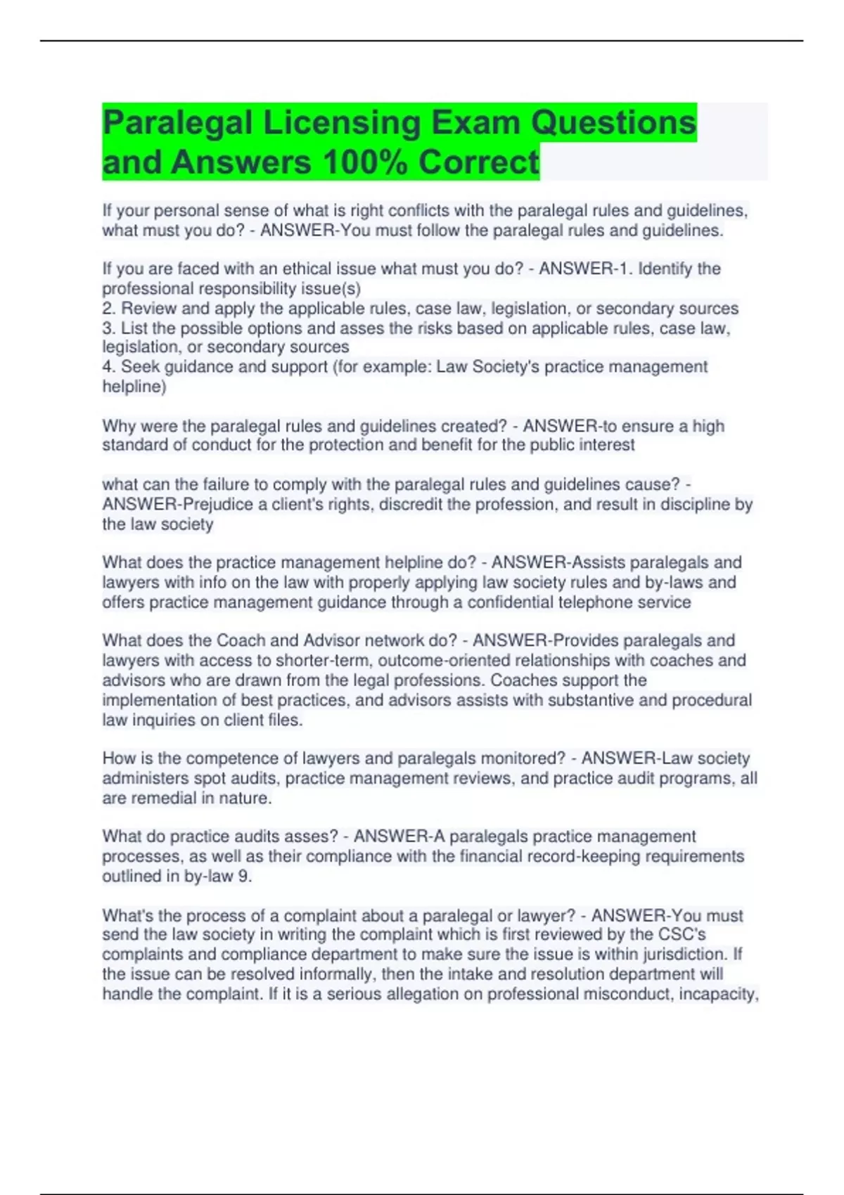 Paralegal Licensing Exam Questions and Answers 100% Correct