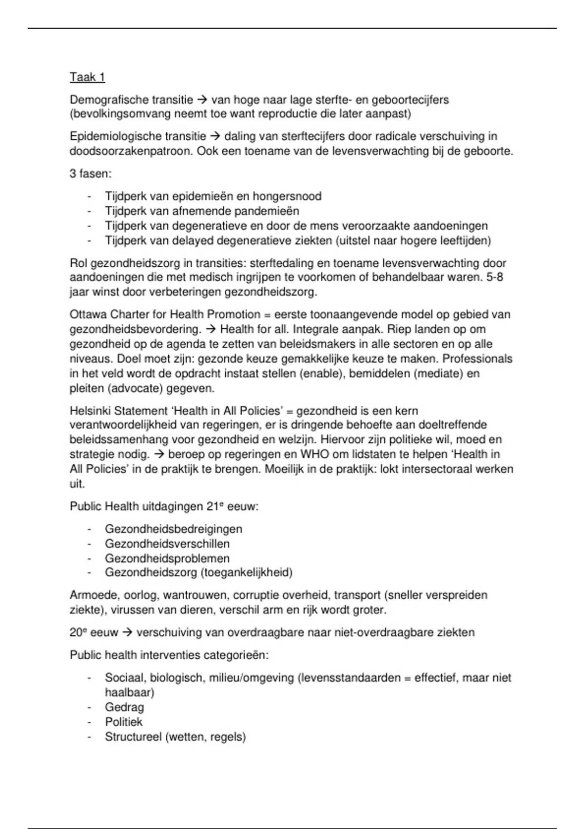 Hele beknopte samenvatting van alle taken uit het blok Uitdagingen in de Public Health (PGZ2021). Bevat overzicht van belangrijke aspecten van het tentamen.