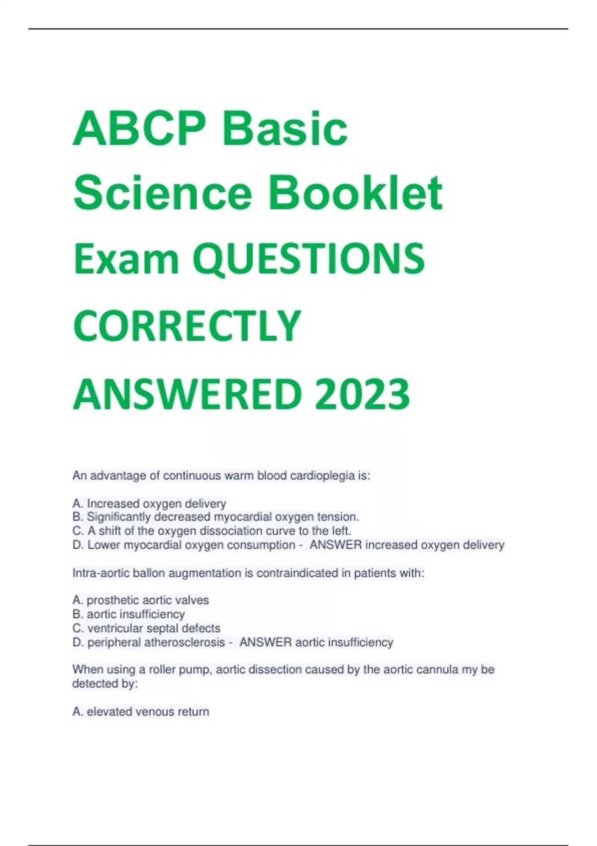 ABCP Basic Science Booklet Exam QUESTIONS CORRECTLY ANSWERED 2023