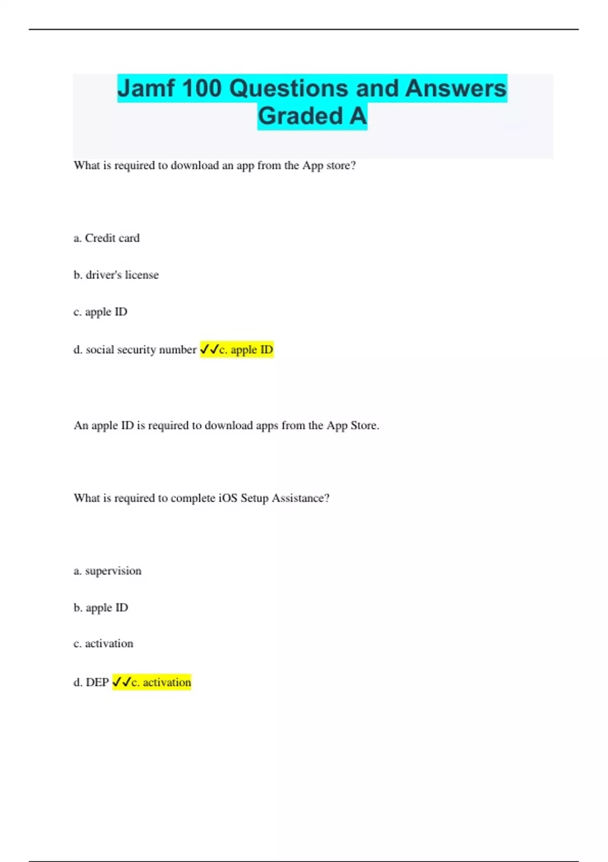 Jamf 100 Questions and Answers Graded A