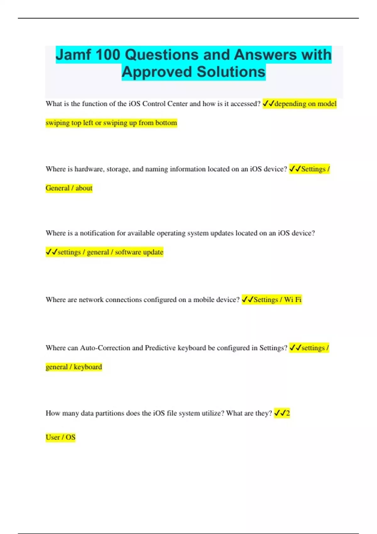 Jamf 100 Questions and Answers with Approved Solutions Already Passed