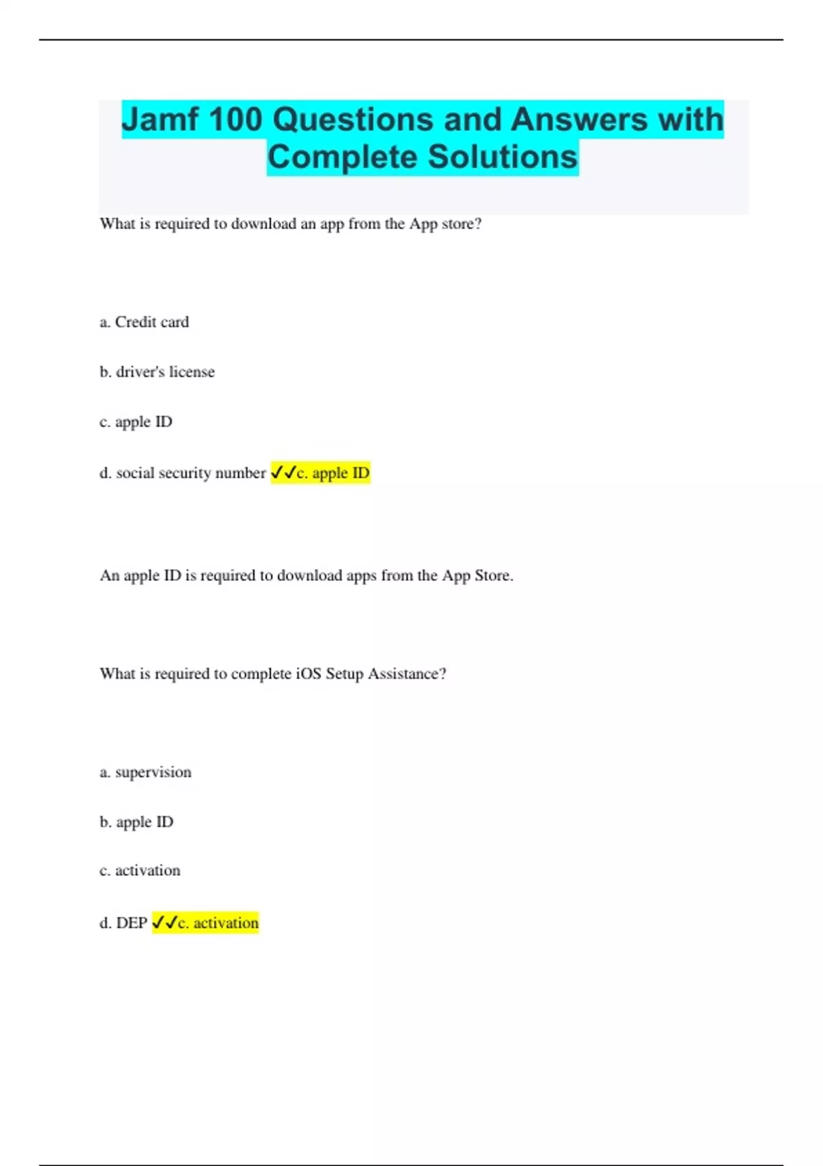 Jamf 100 Questions and Answers with Complete Solutions Already Passed
