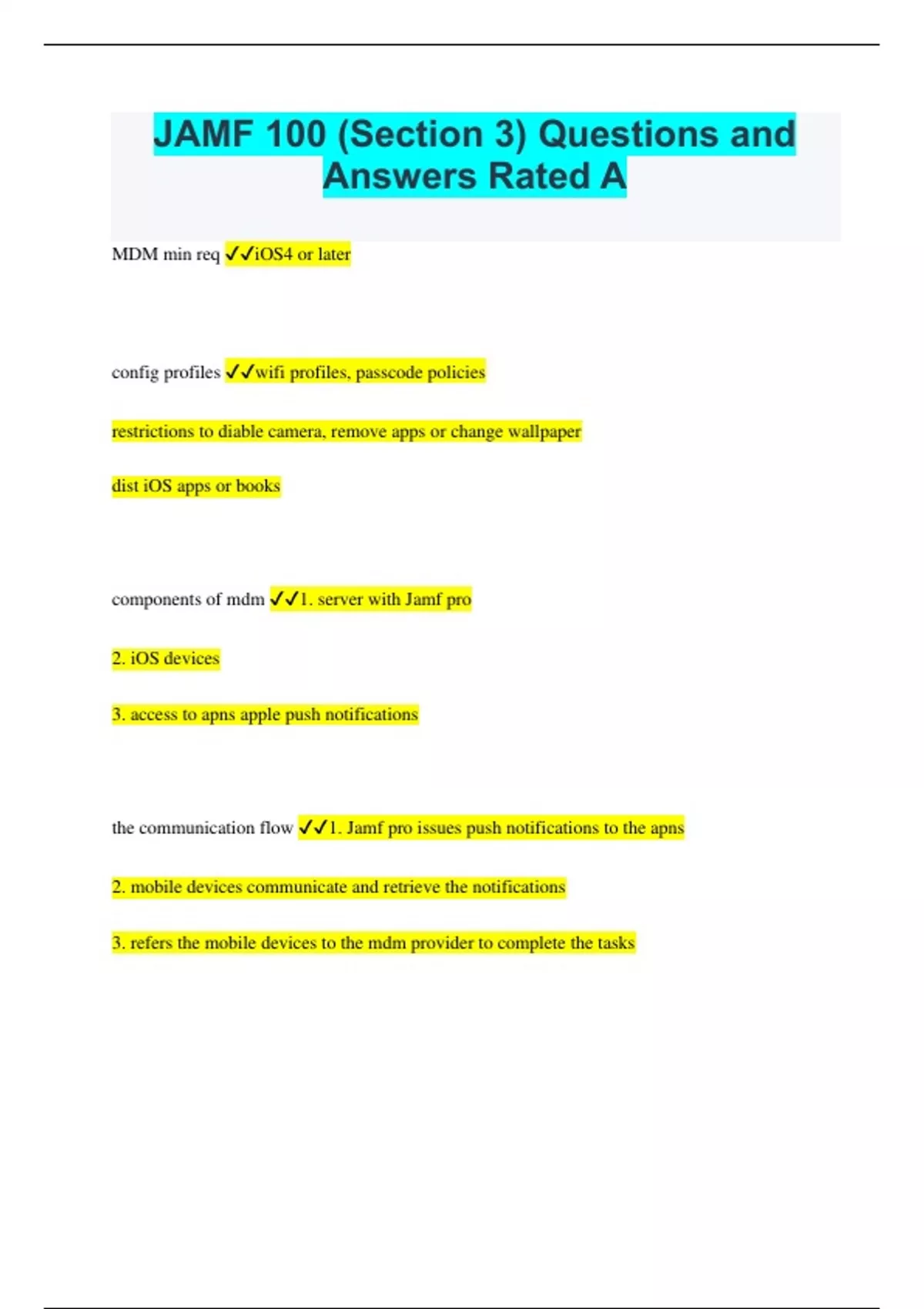 JAMF 100 (Section 3) Questions and Answers Rated A