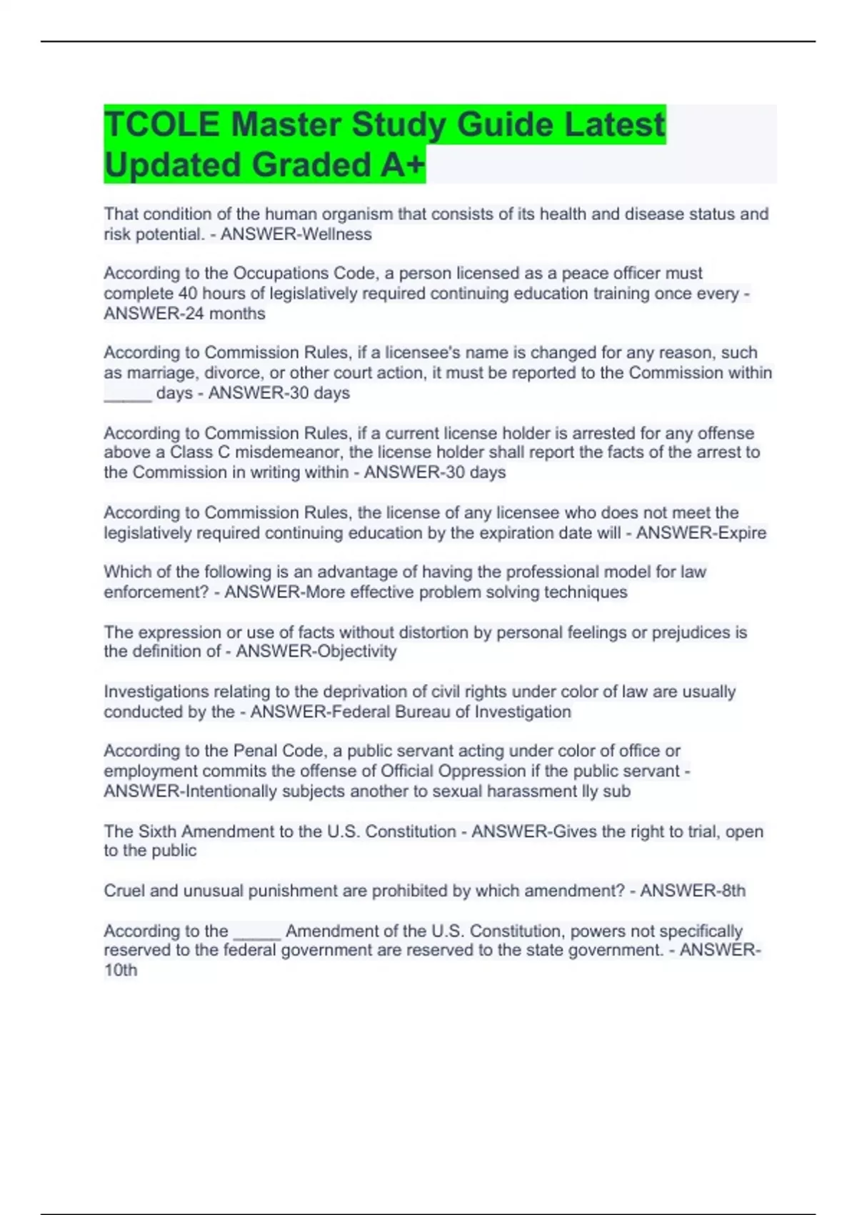 TCOLE Master Study Guide Latest Updated Graded A+