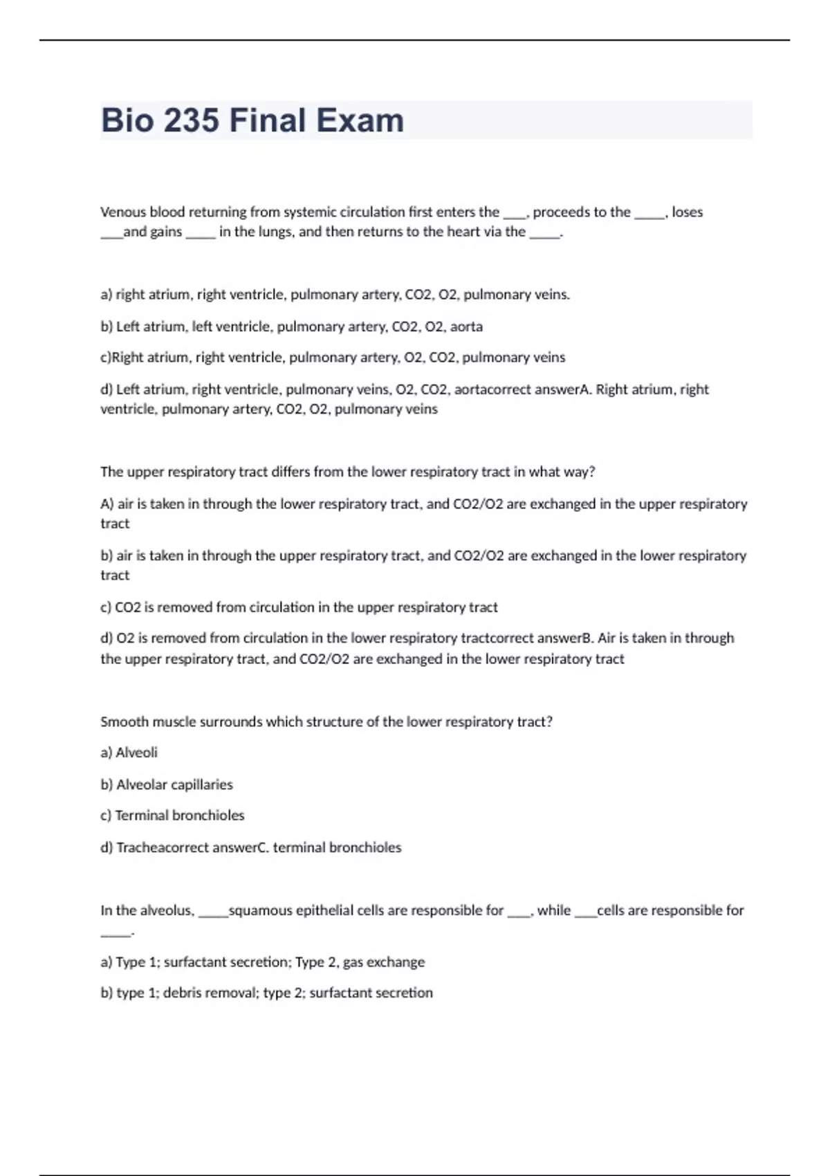 Bio 235 Final Exam with correct answers