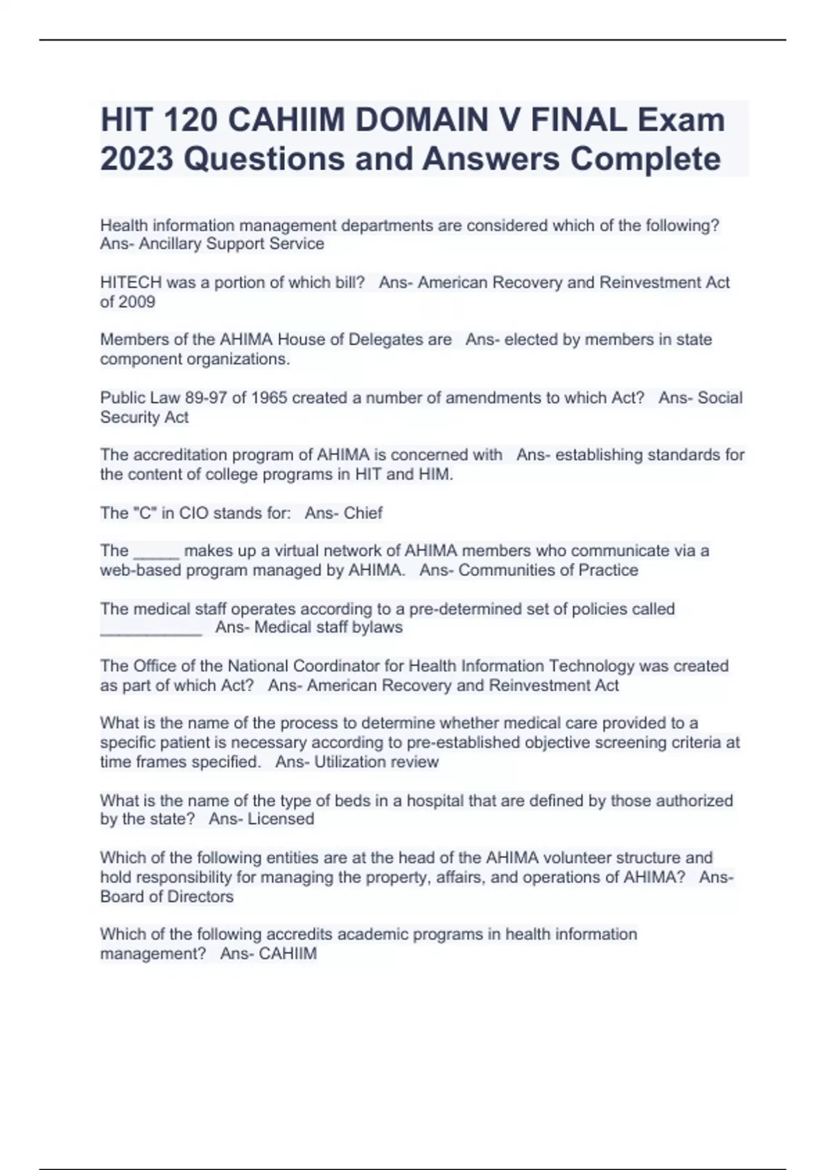 HIT 120 CAHIIM Bundled Exams 2023-2024 with complete solutions