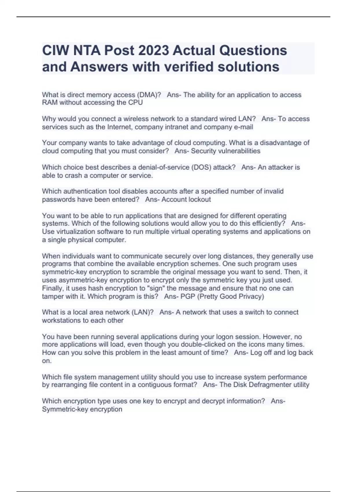 CIW NTA Post 2023 Actual Questions and Answers with verified solutions